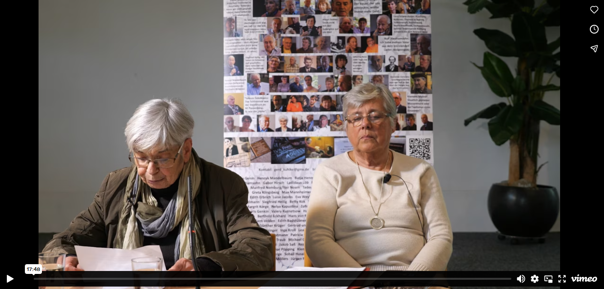 Im Jahr 2024 hatten wir anlässlich des AfD-Parteitags in Essen einen viel beachteten Protestauftritt mit Schildern, auf denen die Verfolgungsdaten unserer Eltern standen. Dies kam vor Allem bei den Jugendlichen gut an. Alice Czyiborra geb. Gingold hielt eine wirkungsvolle Rede.
